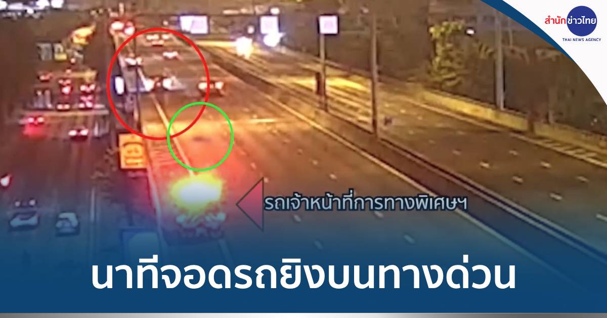 กทม. 30 ธ.ค.-ภาพจากกล้องวงจรปิดบนทางพิเศษฉลองรัช จับภาพนาที ร.ต.ท. ยิงนักธุรกิจหนุ่ม ทำให้เป็นหลักฐานชิ้นสำคัญ พร้อมตรวจยึดอาวุธปืนพร้อมซองกระสุน และแจ้งข้อหาฆ่าผู้อื่นโดยเจตนา