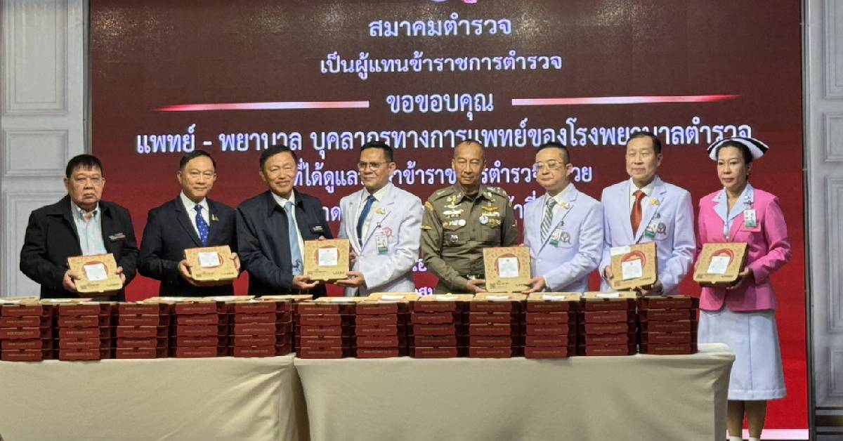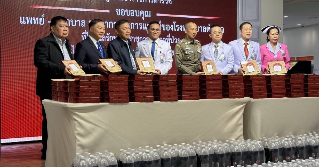 รพ.ตำรวจ 4 ม.ค. – นายกสมาคมตำรวจ พร้อมคณะกรรมการสมาคมฯ มอบพิซซ่า 1,600 ถาด พร้อมน้ำอัดลม 800 ขวด ให้โรงพยาบาลตำรวจ ส่งต่อแพทย์ พยาบาล และบุคลากรทางการแพทย์ เพื่อขอบคุณที่ดูแลผู้ป่วยเป็นอย่างดี