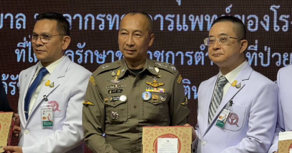 นายแพทย์ใหญ่ โรงพยาบาลตำรวจ กล่าวขอบคุณผู้ที่มาร่วมงานทุกคน ที่มาร่วมแสดงความขอบคุณ ทีมแพทย์ พยาบาล และบุคลากรของโรงพยาบาลตำรวจ ที่ตั้งใจปฏิบัติหน้าที่อย่างดีที่สุด พร้อมขอบคุณ พล.ต.อ.วินัย ทองสอง และคณะที่สนับสนุนและให้การช่วยเหลือบุคลากรทางการแพทย์ของโรงพยาบาลตำรวจมาโดยตลอด ซึ่งขอยืนยันว่า บุคคลากรของโรงพยาบาลตำรวจทุกนายจะปฏิบัติหน้าที่ให้ดีที่สุด สมกับที่ได้รับความไว้วางใจจากประชาชน.-416-สำนักข่าวไทย