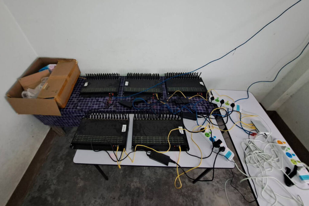 ตำรวจสอบสวนกลางได้ศึกษารูปแบบการกระทำความผิดของแก๊งคอลเซ็นเตอร์มาต่อเนื่อง จนทราบว่าปัจจุบันกลุ่มคนร้ายมีการปรับเปลี่ยนอุปกรณ์ที่ใช้โทรหาผู้เสียหาย โดยมีการแยกเครื่อง “SIMBANK” สำหรับเสียบซิมการ์ดโทรศัพท์ที่เป็นของค่ายโทรศัพท์ในประเทศไทยไว้ที่หนึ่ง “SIMBANK” จะตั้งอยู่ที่ในประเทศหรือต่างประเทศก็ได้ และจำเป็นต้องมีเครื่อง “SIM BOX” หรือ “GSM Gateway” ซึ่งเป็นอุปกรณ์แปลงสัญญาณอินเทอร์เน็ตเป็นสัญญาณมือถือ “SIM BOX” แต่ละเครื่องมีช่องเสียบซิมการ์ดโทรศัพท์จำนวน 32 ซิม แต่กลุ่มคนร้ายไม่ได้เสียบซิมการ์ดไว้ โดย “SIM BOX” จะถูกติดตั้งอยู่ในประเทศไทยหรือฝั่งชายแดนที่ติดต่อประเทศเพื่อนบ้าน โดย “SIMBANK” (เสียบซิมการ์ด) และ “SIM BOX” (ไม่เสียบซิมการ์ด) จะเชื่อมต่อกับผ่าน Router โดยมี “Cloud SIP Server” เป็นตัวกลาง