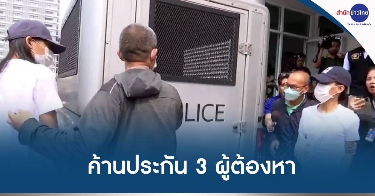 สน.ปทุมวัน 31 ม.ค.-พนักงานสอบสวนควบคุมตัว 3 ผู้ต้องหาที่จับกุมได้เมื่อวานนี้ คือ นายณัฐพร หรือ “โต้ 9 นิ้ว” อายุ 19 ปี นายธีรทัศน์ อายุ 21 ปี นายการัณย์ อายุ 19 ปี ไปขออำนาจศาลฝากขังผัดแรกพร้อมคัดค้านการประกันตัว คดีร่วมกันฆ่า นศ.ปทุมวัน