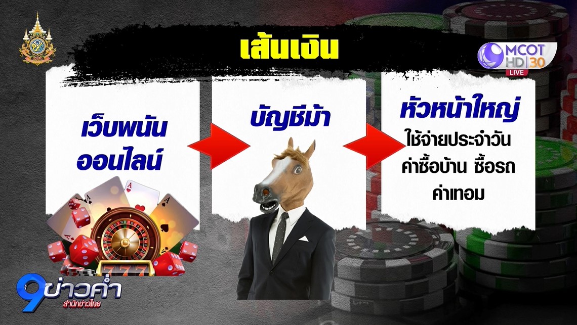 ตำรวจมีพยานหลักฐานว่า เงินจากบัญชีม้าของเว็บไซต์พนันออนไลน์ มีเส้นทางการเงินเชื่อมโยงไปถึงนายตำรวจชั้นผู้ใหญ่ อีกทั้งเงินจากบัญชีม้าดังกล่าวยังเชื่อมโยงไปถึงญาติพี่น้องของผู้ต้องหาที่เป็นตำรวจ นำไปใช้ในชีวิตประจำวัน เช่น ค่ารักษาพยาบาล ซื้อบ้าน ซื้อรถ ค่าเทอม ขณะนี้ยังอยู่ระหว่างการขยายผล