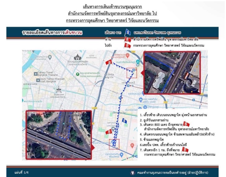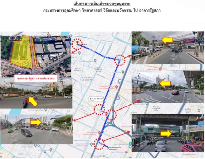1.1 เส้นทางการเดินขบวน(เดินเท้า) จาก มหาวิทยาสัยเทคโนโลยีราชมงคลตะวันออก เขตพื้นที่ อุเทนถวาย –