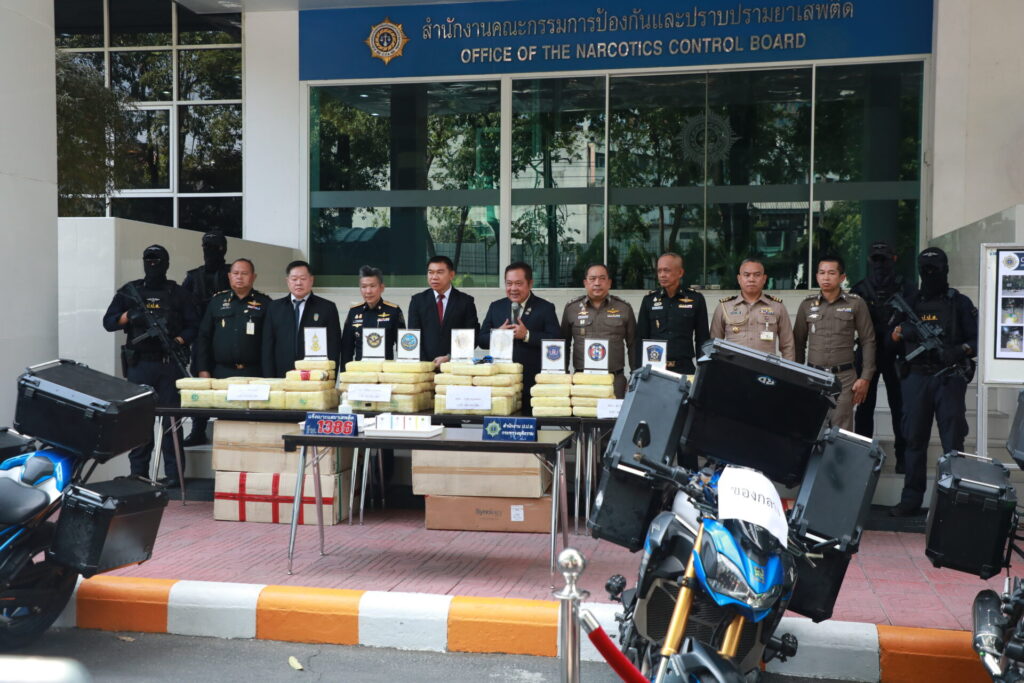 พ.ต.อ.ทวี สอดส่อง รัฐมนตรีว่าการกระทรวงยุติธรรม พร้อมด้วย พล.ต.ท.ภาณุรัตน์ หลักบุญ เลขาธิการ ป.ป.ส., พล.ต.ต.อดิศ เจริญสวัสดิ์ ผู้บังคับการปราบปรามยาเสพติด 3 กองบัญชาการตำรวจปราบปรามยาเสพติด, นายปฤณ เมฆานันท์ ผู้อำนวยการสำนักปราบปรามยาเสพติด สำนักงาน ป.ป.ส., พล.ต.สมจริง กอรี รอง ผบ.นบ.ยส.35/รอง ผอ.ศอ.ปส.ชน., พ.ต.อ.พัสกร ธวัชเชียงกุล ผู้กำกับการสืบสวนตำรวจภูธรจังหวัดเชียงราย, พ.อ.สุชาติ ไวติดต่อ หน่วยข่าวกรองทางทหาร ศูนย์ปฏิบัติการกองทัพบก, น.ท.จักรกฤษณ์ นาคเทวัญ สำนักปฏิบัติการ กรมยุทธการทหารเรือ เข้าร่วมแถลงผลปฏิบัติการสืบสวนขบวนการลำเลียงยาเสพติด ตามเบาะแสร้องเรียนผ่านสายด่วน 1386 สามารถนำไปสู่การจับกุมผู้ต้องหาได้ 6 คน พร้อมของกลางยาบ้า 1,890,000 เม็ด ซุกซ่อนในอุปกรณ์พ่วงข้างรถจักรยานยนต์ Big Bike จำนวน 5 คัน คันละ 370,000-380,000 เม็ด หลังจากนั้นทำการขยายผลตรวจค้นเพิ่มเติม จำนวน 10 จุด ในพื้นที่ 4 จังหวัดชลบุรี, กทม., สมุทรปราการ, และพิจิตร จากผลการปฏิบัติการ สามารถตรวจยึดอายัดทรัพย์สินเพิ่มเติมอีก ได้แก่ รถยนต์ 2 คัน รถจักรยานยนต์ 1 คัน รวมเป็นรถจักรยานยนต์ Big Bike 6 คัน เงินสด 49,000 บาท ทองคำน้ำหนักรวม 42 บาท อายัดเงินในบัญชีธนาคารยอดเงิน 217,000 บาท รวมมูลค่าทรัพย์สินกว่า 7 ล้านบาท ณ สำนักงาน ป.ป.ส. (ดินแดง)