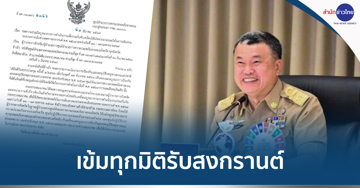 24 มี.ค.- ปลัด มท. เน้นย้ำผู้ว่าฯ ทั่วประเทศ บูรณาการทุกภาคส่วนในพื้นที่ ดำเนินมาตรการเข้มข้นทุกมิติ เพื่อสร้างความปลอดภัยในสวัสดิภาพของพี่น้องประชาชนต้อนรับเทศกาลสงกรานต์ 2567 เน้นย้ำ แจ้งเหตุทางสายด่วนนิรภัย 1784 ตลอด 24 ชั่วโมง