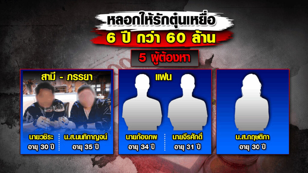 กทม. 25 มี.ค. – ตำรวจสอบสวนกลางทลายเครือข่าย แก๊งโรแมนซ์สแกม หลอกให้รักนาน 6 ปี ตุ๋นเหยื่อโอนเงิน มูลค่าความเสียหายรวมกว่า 60 ล้านบาท