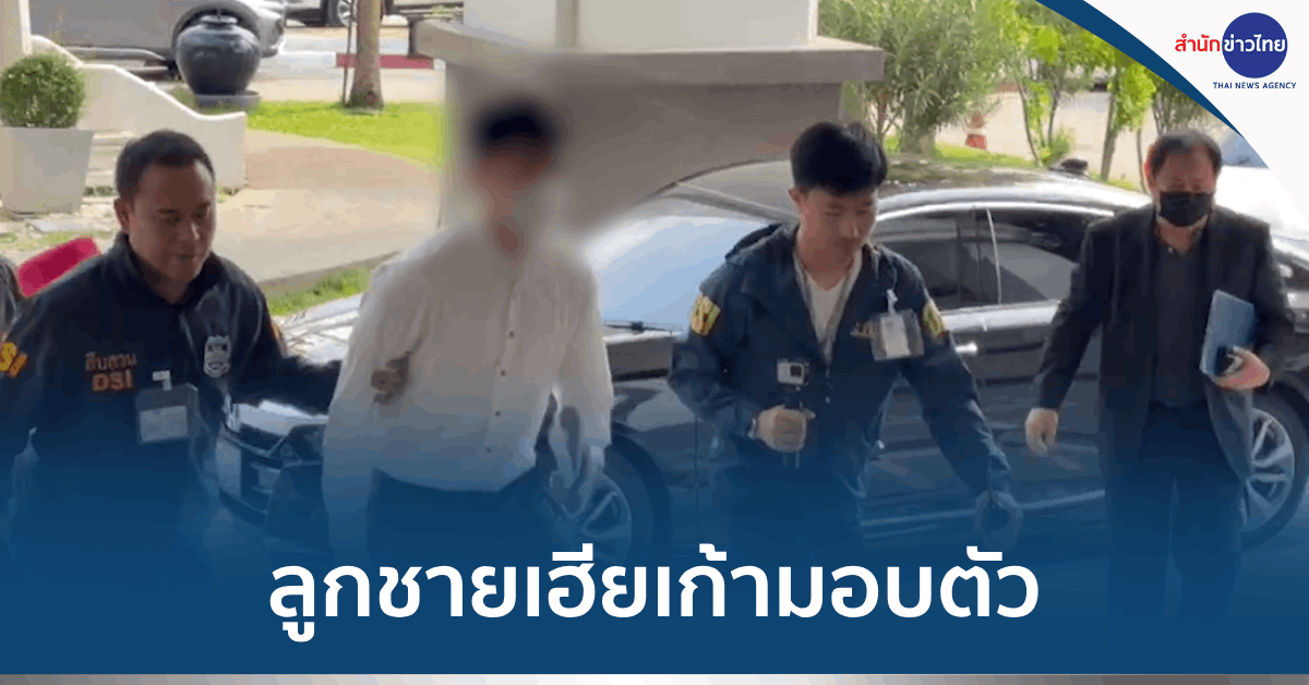กทม. 26 มี.ค. – “กรินทร์” ลูกชายเฮียเก้า มอบตัวดีเอสไอ คดีสวมสิทธิส่งออกตีนไก่ หลังเดินทางกลับจากจีน