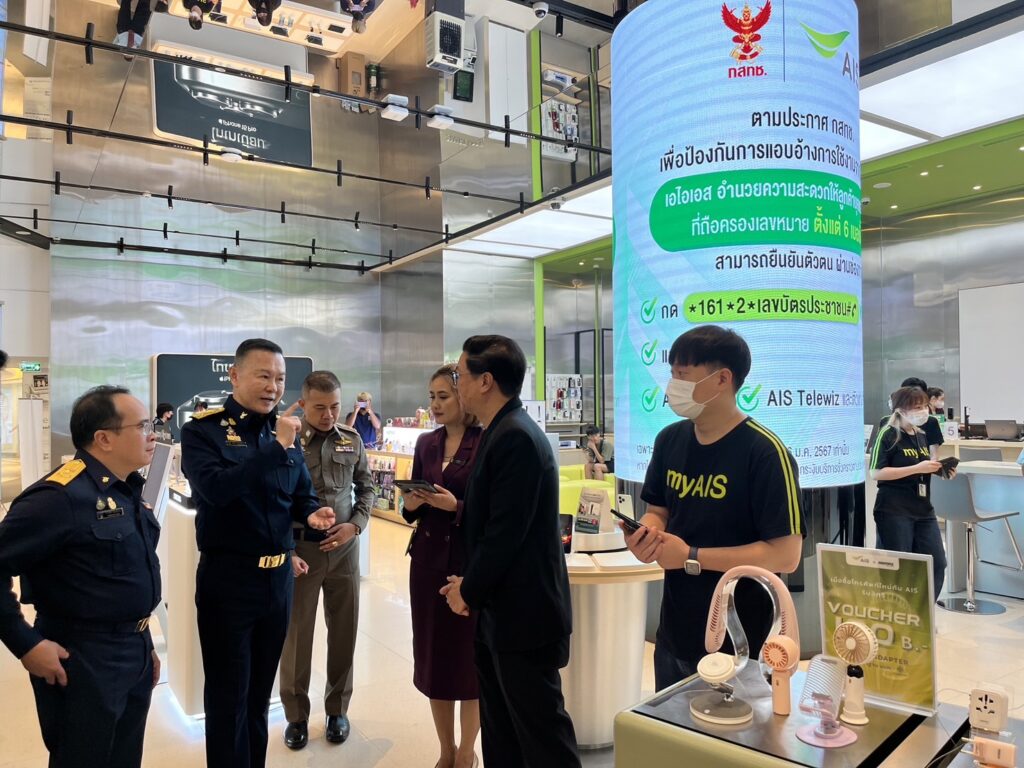 พล.ต.อ.ณัฐธร เพราะสุนทร กสทช.ด้านกฎหมายและประธานอนุกรรมการบูรณาการบังคับใช้กฎหมายความผิดทางเทคโนโลยีฯ, พล.ต.ท.ธัชชัย ปีตะนีละบุตร ผู้ช่วย ผบ.ตร. ดูแลงานด้านอาชญากรรมเทคโนโลยี/ อนุกรรมการบูรณาการฯ, นายสุทธิศักดิ์ ตันตะโยธิน รองเลขาธิการ กสทช. พร้อมด้วย คณะผู้บริหาร กสทช. ตรวจเยี่ยมการลงทะเบียนเลขหมายโทรศัพท์เคลื่อนที่และการยืนยันตัวตน ณ ศูนย์บริการลูกค้าหลักของผู้ประกอบการโทรศัพท์เคลื่อนที่ทุกข่าย ทั้ง AWN, TRUE และ DTAC ณ สยามพารากอน กรุงเทพฯ โดยมีผู้บริหารของบริษัทผู้ให้บริการโทรศัพท์เคลื่อนที่ให้การต้อนรับ คณะผู้บริหาร กสทช. และอนุกรรมการบูรณาการฯ ได้ตรวจติดตามความรัดกุมในการลงทะเบียนซิมมือถือและการยืนยันตัวตนตามประกาศ กสทช. พร้อมหารือถึงมาตรการกำกับดูแลผู้จำหน่ายรายย่อย (ตู้ขายซิม) จากการขยายผลการจับกุมแก๊งคอลเซ็นเตอร์ในพื้นที่ จ.นครศรีธรรมราช เมื่อสัปดาห์ก่อน ตรวจยึดซิมผีกว่า 1,037 เลขหมาย พบว่าซิมบางส่วนซื้อมาจากตู้จำหน่ายชิม ไม่มีการลงทะเบียนผู้ใช้งานจริง หรือมีการลงทะเบียนด้วยข้อมูลที่ไม่ถูกต้อง และบางส่วนถูกระงับการใช้งานจากมาตรการยืนยันตนของ กสทช.