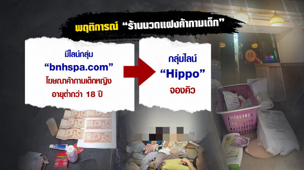 กทม. 5 เม.ย. – ตำรวจ 191 ล่อซื้อจับกุมขบวนการค้ามนุษย์ เปิดร้านนวดแฝงค้ากามเด็กสาว อายุน้อยสุด 15 ปี