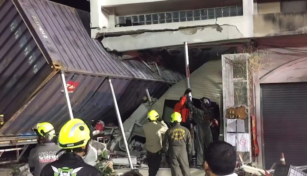 ขณะที่เช้าวันนี้ เจ้าหน้าที่จากกรุงเทพมหานคร ได้ลงพื้นที่เตรียมการเคลื่อนย้ายรถบรรทุกพ่วงอีกครั้ง โดยกำลังรอผู้เชี่ยวชาญจากวิศวกรรมสถานแห่งประเทศไทย มาประเมินสถานการณอย่างละเอียด ก่อนจะเคลื่อนย้ายรถออกจากตัวอาคาร.-สำนักข่าวไทย