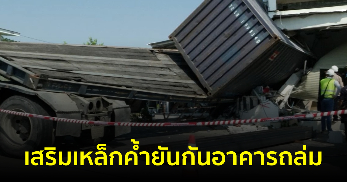 6 เม.ย. – เหตุรถพ่วง 18 ล้อ บรรทุกตู้คอนเทนเนอร์ เสียหลักพุ่งชนอาคารพาณิชย์ ย่านฝั่งธนบุรี จนตัวอาคารเสียหายอย่างหนัก เจ้าหน้าที่ยังไม่สามารถเคลื่อนย้ายรถออกจากอาคารได้ หวั่นอาคารพังถล่มลงมา.-สำนักข่าวไทย