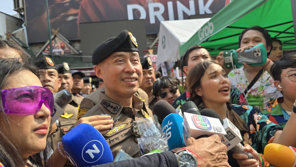 กทม. 13 เม.ย.-ผู้ช่วย ผบ.ตร. แท็กทีม 7 หน่วย ปล่อยแถวป้องกันโจรลักทรัพย์ แก๊งดูดเงิน นักท่องเที่ยว ในพื้นที่เล่นน้ำสงกรานต์ขนาดใหญ่ พร้อมดูแลความปลอดภัยป้องกันเหตุทะเลาะวิวาท
