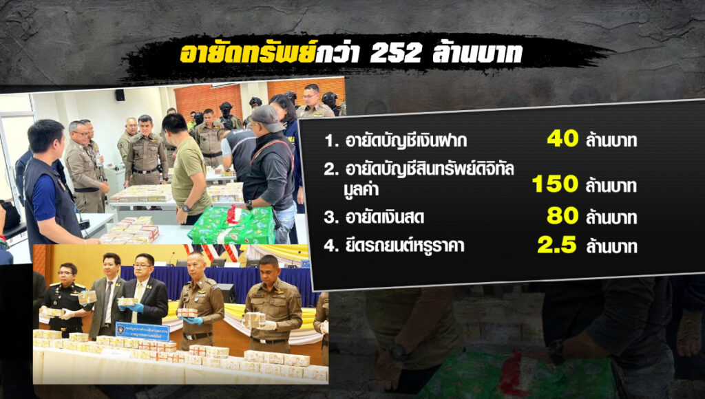 - อายัดบัญชีสินทรัพย์ดิจิทัล มูลค่าประมาณ 150 ล้านบาท