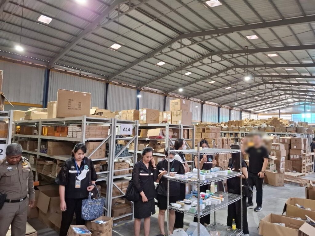 ตำรวจขยายผลและนำหมายค้นของศาลแขวงสมุทรปราการทำการตรวจค้นโกดังซึ่งเป็นสถานที่จัดเก็บและกระจายสินค้าผิดกฎหมายในพื้นที่ตำบลท้ายบ้าน อำเภอเมืองสมุทรปราการ โดยขณะตรวจค้นมี น.ส.กรรณิกาฯ แสดงตัวเป็นผู้ดูแลโกดังและตำรวจเข้าตรวจยึดและอายัดของกลางกว่า 62 รายการ 31,922 ชิ้น มูลค่ากว่า 20 ล้านบาท โดยเป็นเครื่องสำอางปลอมจำนวน 2 รายการ และเครื่องสำอางต้องสงสัยว่าปลอม 18 รายการ และเป็นเครื่องสำอาง ไม่มีเลขที่ใบรับจดแจ้งและเครื่องสำอางไม่แสดงฉลากภาษาไทย 32 รายการ ซึ่งทั้งหมดล้วนเป็นยี่ห้อและผลิตภัณฑ์ที่มีชื่อเสียงและเป็นที่นิยมในท้องตลาด