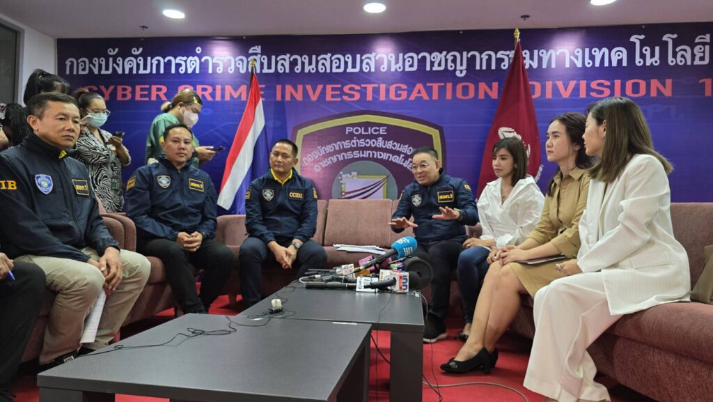 กองบังคับการตำรวจสืบสวนสอบสวน อาชญากรรมทางเทคโนโลยี 1 ศูนย์ราชการฯ ถ.แจ้งวัฒนะ “ใบเตย-สุธีวัน” เข้าพบ พล.ต.ต.ชัชปัณฑกาณฑ์ คล้ายคลึง ผู้บังคับการตำรวจสืบสวนสอบสวน อาชญากรรมทางเทคโนโลยี 1 เพื่อแจ้งความดำเนินคดีกับเว็บพนันออนไลน์นำรูปไปแอบอ้างโปรโมทเว็บออนไลน์
