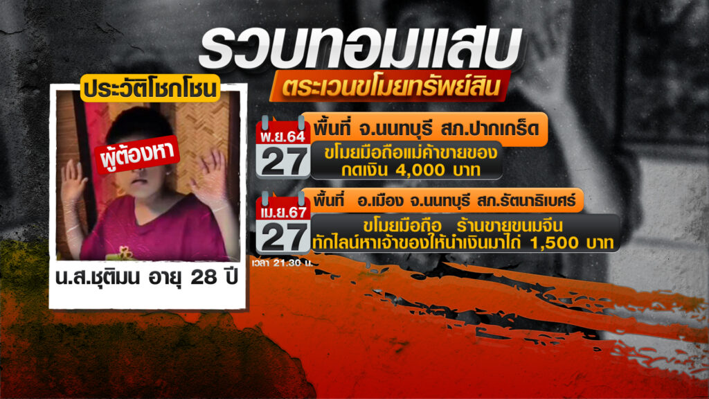 ส่วนหลักฐานกล้องวงจรปิดบันทึกภาพวันที่ 27 เม.ย.67 เวลา 21.30 น. ผู้ต้องหา ก่อเหตุขโมยมือถือในร้านขายขนมจีน อ.เมือง จ.นนทบุรี แล้วหนีไป พร้อมทั้งทักไลน์มาหาผู้เสียหายให้นำเงินมาถ่ายมือถือในราคา 1,500 บาท เหตุเกิดพื้นที่สภ.รัตนาธิเบศร์ แต่จับตัวไม่ได้ .-สำนักข่าวไทย