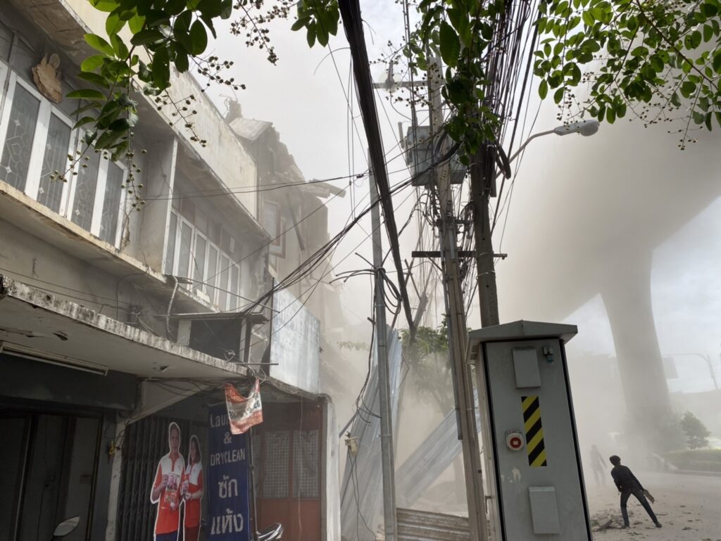ด้านนางนงลักษณ์ อายุ 34 ปี พนักงานร้านไส้กรอกไก่ที่อยู่คูหาถัดไป เล่าว่า มีการรื้อถอนอาคารพาณิชย์ดังกล่าวมานานแล้ว ได้ยินเสียงจากการรื้อถอนทั้งวัน ซึ่งไม่ทราบว่าใช้เครื่องจักรหรือใช้คนในการทุบรื้อถอน และถูกต้องหรือไม่ แต่ไม่เคยมีใครมาแจ้งให้ตนเองทราบเลยว่ามีการรื้อถอนอาคารดังกล่าว จนกระทั่งเกิดเหตุ ตนได้ยินเสียงดังสนั่น ก็รีบวิ่งหนีเอาชีวิตรอดก่อน ทิ้งทรัพย์สินทั้งหมดออกมาอย่างไม่คิดชีวิต เพราะกลัวมาก เกรงว่าทั้งอาคารที่รื้อถอนและอาคารที่ตนเองอยู่จะถล่มลงมา เพราะเป็นอาคารเก่า ก่อสร้างมานานแล้ว หากอาคารที่อยู่ถล่มลงมา ตนเองอาจติดอยู่ภายในร้าน