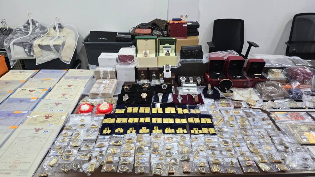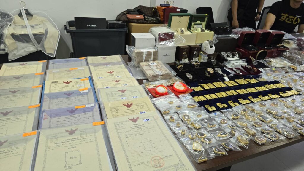 สำหรับทรัพย์สินที่ตรวจยึดและอายัดมาได้นั้น ประกอบด้วย กองทุน หุ้นกู้ ประกัน มูลค่า 200 ล้านบาท, พระเครื่อง นาฬิกาหรูกว่า 300 รายการ มูลค่าประมาน 100 ล้านบาท, โฉนดที่ดิน 24 แปลง, บ้านหรู บ้านพักตากอากาศ บ้านสวน และคอนโดหลายแห่ง, ทองคำน้ำหนัก 520 บาท มูลค่าประมาณ 30 ล้านบาท และรถหรู 5 คัน รวมถึงเงินสด 2.5 ล้านบาท รวมของกลางที่ตรวจยึดอายัดไว้ได้มูลค่ามากกว่า 300 ล้านบาท. -419-สำนักข่าวไทย