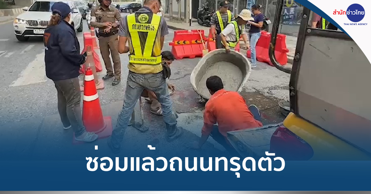 ล่าสุดเจ้าหน้าที่กรมทางหลวง นำหินคลุก 50 กระสอบ มาเทและบดอัดใต้ผิวจราจร จากนั้นใช้น้ำฉีดด้านบนให้หินคลุกยุบตัว เพื่อความแน่นหนา ก่อนจะใช้ซีเมนต์ชนิดแห้งเร็วเททับด้านบนหนา 25 ซม. โดยจะเปิดช่องจราจรได้ หลังจากเทซีเมนต์ 3-4 ชม. คาดว่าน่าจะเปิดผิวจราจรได้เวลา 20.00 น.