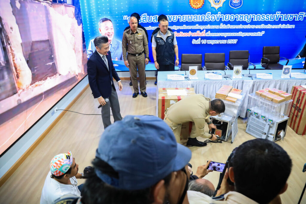 เลขาธิการ ป.ป.ส. กล่าวว่า การตรวจยึดยาเสพติดดังกล่าว สืบเนื่องจาก เมื่อวันที่ 25 เมษายน 2567 สำนักงาน ป.ป.ส. ร่วมกับ ชุดปฏิบัติการปราบปรามและสกัดกั้นยาเสพติดในพื้นที่ท่าเรือ (Seaport Interdiction Task Force : SITF) ตรวจยึดคีตามีน 320 กิโลกรัม ซุกซ่อนในฐานรองหุ่นยนต์เหล็ก เตรียมส่ง ไต้หวันผ่านการขนส่งทางเรือ พร้อมขยายจับกุมผู้ต้องหา 1 ราย ซึ่งสำนักงาน ป.ป.ส. ได้ประสานงานและแลกเปลี่ยนข้อมูลการสืบสวน ร่วมกับ กระทรวงยุติธรรมไต้หวันอย่างใกล้ชิด กระทั่งวันที่ 14 พฤษภาคม 2567 เจ้าหน้าที่ ป.ป.ส. ร่วมกับ บก.ปส.1 บช.ปส. สืบสวนทราบว่า มีบุคคลในเครือข่ายยาเสพสติดเตรียมจัดส่งยาเสพติดไปยังไต้หวัน จึงดำเนินการสืบสวนและตรวจสอบพบพัสดุระหว่างประเทศต้องสงสัยที่คาดว่าจะซุกซ่อนยาเสพติด จากการตรวจสอบพบว่าเป็นเครื่องทำเครื่องดื่มเกล็ดน้ำแข็ง จำนวน 2 เครื่อง โดยภายในทำเป็นกล่องเหล็กขนาดกลางเพื่อใช้ซุกซ่อนเฮโรอีน เครื่องละ 20 แห่ง (น้ำหนัก 7.4 กิโลกรัม) รวม 2 เครื่อง ซุกซ่อนเฮโรอีนน้ำหนักรวม 14.8 กิโลกรัม