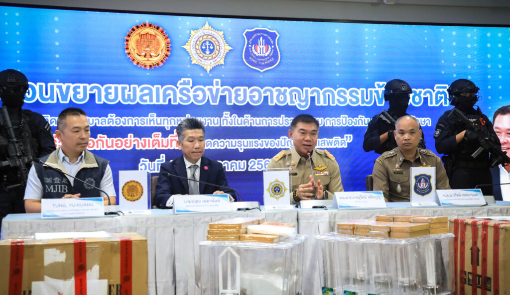 พล.ต.ท.ภาณุรัตน์ กล่าวว่า ปัจจุบันปัญหาการค้ายาเสพติดในลักษณะเครือข่ายอาชญากรรมข้ามชาติ ลักลอบลำเลียงยาเสพติดโดยใช้ไทยเป็นทางผ่านไปยังประเทศที่สามยังพบอย่างต่อเนื่อง ทั้งผ่านการขนส่งทาง พัสดุภัณฑ์ระหว่างประเทศ ผ่านการขนส่งทางอากาศ และ ซุกซ่อนในสินค้าต่างๆ ผ่านการขนส่งทางเรือ รัฐบาลภายใต้การนำของนายเศรษฐา ทวีสิน นายกรัฐมนตรี และ พ.ต.อ.ทวี สอดส่อง รัฐมนตรีว่าการกระทรวง ยุติธรรม ได้ยกการแก้ไขปัญหายาเสพติดเป็นวาระสำคัญของชาติ และในการปราบปรามเครือข่ายยาเสพติดข้ามชาติต้องประสานงานกับต่างประเทศเชิงรุก เพื่อหาข้อมูลการข่าว และขยายผลเพื่อจัดการหัวหน้า เครือข่ายและยึดทรัพย์ ซึ่งรัฐบาลได้มีโครงการความร่วมมือด้านปราบปรามและสกัดกั้นยาเสพติดพื้นที่ท่า อากาศยาน (Airport Interdiction Task force: AITF) และ สกัดกั้นยาเสพติดพื้นที่ท่าเรือ (Seaport Interdiction Task Force : SITF) เป็นหน่วยปฏิบัติต้นทางในการสกัดกั้นการนำยาเสพติดเข้าพื้นที่ตอนใน และส่งออกไปยังประเทศที่สาม ทั้งนี้ความร่วมมือในการแลกเปลี่ยนข้อมูลข่าวการสืบสวนร่วมกับหน่วยงาน ระหว่างประเทศ จะเป็นส่วนสำคัญช่วยให้การจับกุมประสบผลสำเร็จมากขึ้นเช่นในครั้งนี้ ซึ่งต้องขอบคุณความ ร่วมมือจาก MJIB หรือกระทรวงยุติธรรมไต้หวัน.-419.-สำนักข่าวไทย