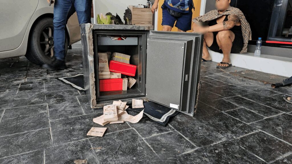 พล.ต.ต.จิตติพล กล่าวว่า ขณะเจ้าหน้าที่ตรวจค้นนั้น เจ้าของเฟซบุ๊กได้แอบส่งข้อความทางแอปพลิเคชั่นไลน์หาพ่อของหนึ่งในผู้ต้องหาให้แอบขนย้ายตู้เซฟจากชั้นบนของบ้านในจุดตรวจค้นที่ 2 ไปซุกซ่อน เจ้าหน้าที่ตรวจพบข้อมูลในโทรศัพท์มือถือ จึงนำกำลังไปตรวจสอบ จากการสอบถามพ่อผู้ต้องหารับว่าผู้ต้องหาได้ส่งข้อความทางไลน์ให้นำตู้เซฟไปซ่อน ตนเองรักลูกจึงยอมทำตาม แต่เนื่องจากตู้เซฟมีน้ำหนักมาก ตนเองจึงใช้วิธีกลิ้งตู้เซฟจากชั้นบนของตัวบ้านลงมาซุกซ่อนไว้บริเวณหลังบ้าน และตอนนั้นตนเองก็ไม่ทราบว่าสามารถกลิ้งตู้ที่เซฟที่มีน้ำหนักมากขนาดนี้ลงมาคนเดียวได้อย่างไร เพราะตนมีอายุ 70 ปีแล้ว และยังมีรูปร่างผอมบางอีก จากการตรวจสอบภายในตู้เซฟ พบเงินสดจำนวนกว่า 3,700,000 บาท พระเลี่ยมทองจำนวนหลายรายการ และทองคำแท่งน้ำหนักรวมกว่า 10 บาท