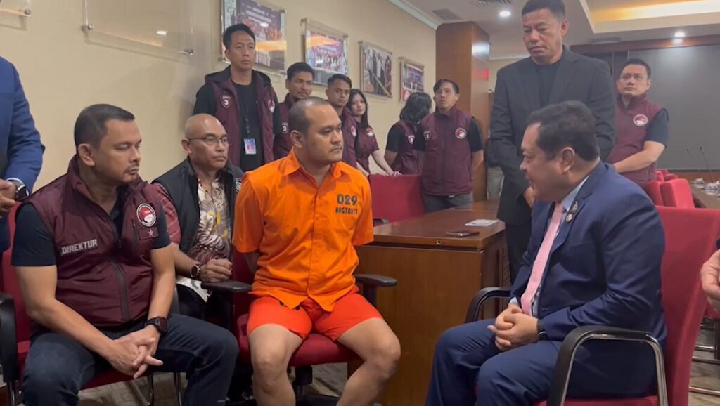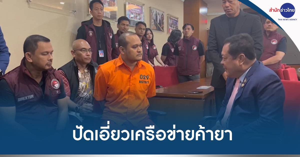 พ.ต.อ.ทวี ยังมอบหมาย พล.ต.ท.ภาณุรัตน์ หลักบุญ เลขาธิการ ป.ป.ส. ร่วมกับตำรวจอินโดนีเซีย แถลงความร่วมมือในการจับกุม แป้ง นาโหนด คนร้ายรายสำคัญของไทย และเครือข่ายที่แป้งร่วมอยู่ในอินโดนีเซีย.-119.-สำนักข่าวไทย