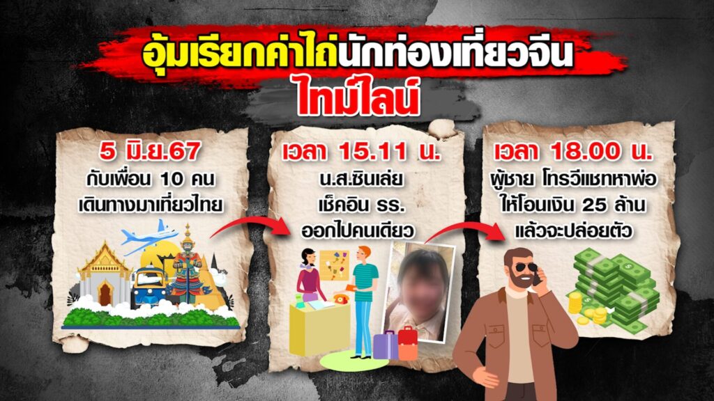 กทม. 8 มิ.ย.-ครอบครัวแจ้งผ่านล่ามตามหานักท่องเที่ยวชาวจีน คาดอาจถูกจับเรียกค่าไถ่ 25 ล้านบาท