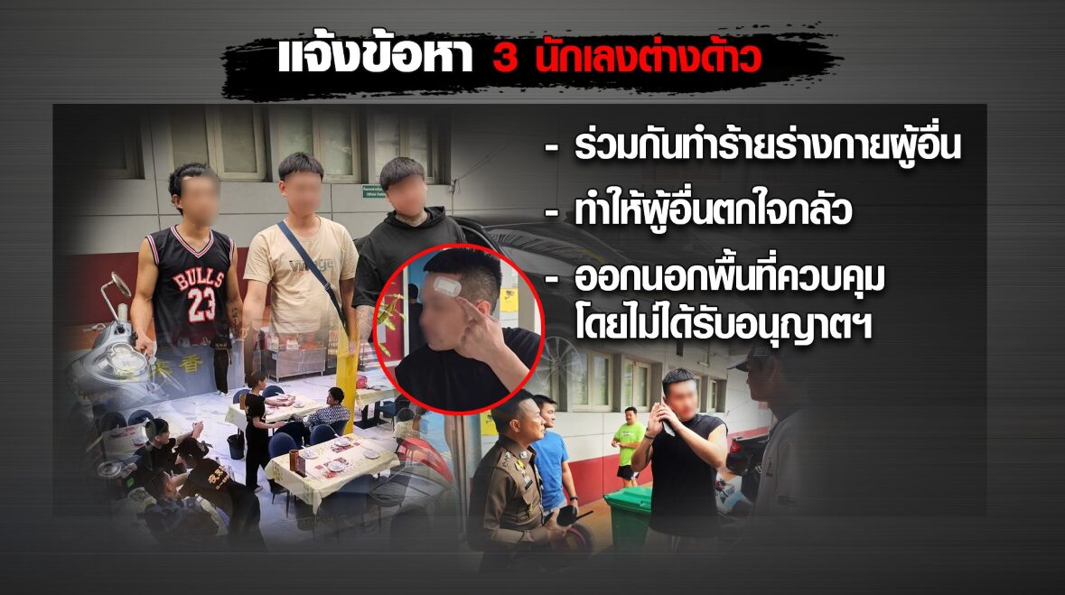 ซึ่งจากการตรวจสอบ พบว่าผู้ก่อเหตุทั้งสามคน ประกอบด้วย นายจี้เหว่ย, นายธันวา และนาย อาซิง เป็นแรงงานถูกต้องตามกฎหมาย ตำรวจแจ้งข้อหา ผู้ก่อเหตุทั้งสามคนในข้อหา ร่วมกันทำร้ายร่างกายผู้อื่น เป็นเหตุให้ได้รับอันตรายแก่กายหรือจิตใจ, ทำให้ผู้อื่นตกใจกลัว, ออกนอกพื้นที่ควบคุมโดยไม่ได้รับอนุญาต จากนั้นผู้เสียหาย ที่ได้รับบาดเจ็บ ซึ่งเป็นชาวจีน ได้เดินทางเข้ามาชี้ตัวเพื่อยืนยันตัวตนผู้ก่อเหตุทั้ง 3 คน และกล่าวขอบคุณ เจ้าหน้าที่ตำรวจที่ไม่นิ่งนอนใจสามารถติดตามผู้ก่อเหตุได้ในเวลาอันรวดเร็ว .-สำนักข่าวไทย