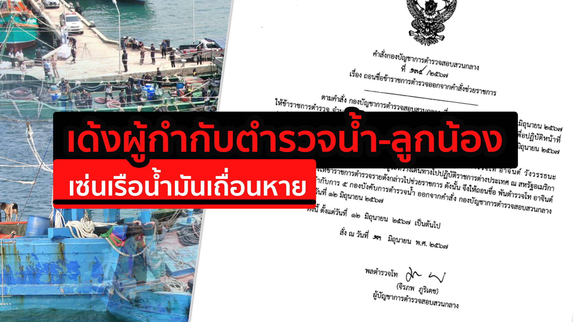 สำหรับการเซ็นคำสั่งย้ายเจ้าหน้าที่ตำรวจน้ำทั้ง 4 นาย เป็นผลพวงจากกรณีเรือบรรทุกน้ำมันของกลางขนาดใหญ่ 3 ลำ บรรจุน้ำมันรวมกว่า 300,000 ลิตร หายไปจากท่าเทียบเรือตำรวจน้ำสัตหีบ จ.ชลบุรี ทั้งนี้ เพื่อให้การตรวจสอบข้อเท็จจริงเป็นไปด้วยความเรียบร้อย-สำนักข่าวไทย