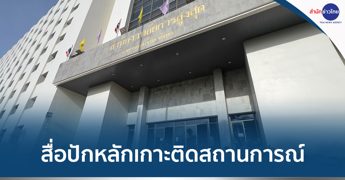 บรรยากาศด้านหน้าสำนักงานอัยการสูงสุด ถนนรัชดาภิเษก สื่อมวลชนหลายสำนักทยอยปักหลักเกาะติดสถานการณ์ตั้งแต่เช้า โดยที่หน้าบันไดทางเข้าสำนักงาน เจ้าหน้าที่นำแผงเหล็กมากั้นไว้เป็นการจัดระเบียบสื่อมวลชน และมี รปภ.คอยดูแลความเรียบร้อยอย่างใกล้ชิด