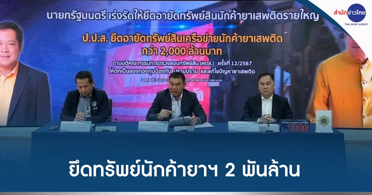 ป.ป.ส. 20 มิ.ย. – ป.ป.ส.แถลงยึดทรัพย์นักค้ายาฯ รายสำคัญกว่า 2 พันล้านบาท ตัดวงจรยาเสพติด ตามนโยบายรัฐบาล ชวนประชาชนร่วมชี้เบาะแสกลุ่มเครือข่ายหรือนักค้ายาเสพติด จะได้รับรางวัลเงินสินบน 5% ด้วย