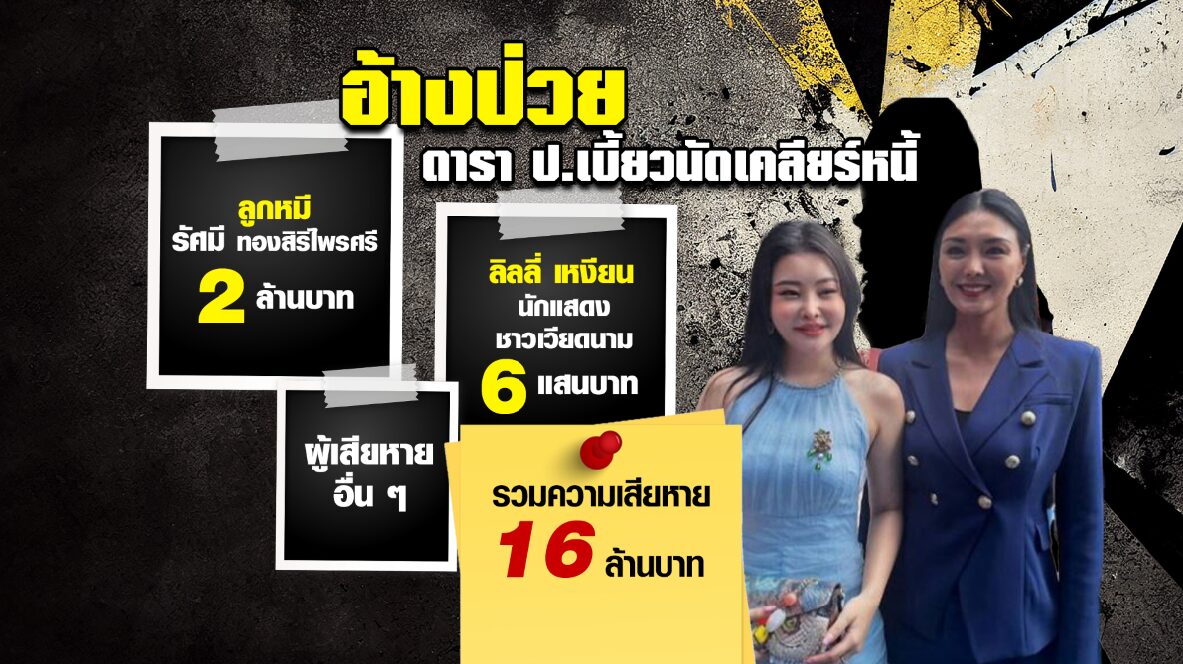 วันนี้ “ลูกหมี” รัศมี ทองสิริไพรศรี นางแบบสาวพร้อมผู้เสียหาย ที่ถูก ดาราสาว “ป.” ยืมเงินไม่คืนรวมกว่า 16 ล้านบาท เดินทางมาที่ สน.ทองหล่อ เพื่อเผชิญหน้ากับ ดารา ป. หลังตำรวจออกหมายเรียกครั้งที่ 2 แต่กลับไร้เงา อ้างนอนป่วยอยู่ที่โรงพยาบาล ส่งใบรับรองแพทย์ให้ตำรวจ ส่วน “ลิลลี่ เหงียน” นักแสดงชาวเวียดนาม ที่ให้ยืมเงิน 6 แสน และยังมีผู้เสียหายจำนวนไม่น้อย ที่ถูกดาราสาว ป. จ่ายเช็คเด้ง รวมความเสียหายกว่า 16 ล้านบาท โดยมีทนายกุ้ง ทีมงานทนายคลายทุกข์ พาผู้เสียหายทั้งหมดไปพบพนักงานสอบสวน สน.ทองหล่อ