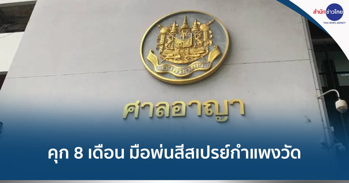 4 ก.ค. – ศาลอาญาสั่งจำคุก “บังเอิญ” มือพ่นสีสเปรย์กำแพงวัดพระแก้ว 1 ปี ไม่รอลงอาญา แต่คำให้การเป็นประโยชน์ลดโทษ 1 ใน 3 คงจำคุก 8 เดือน และให้ริบกระป๋องสีสเปรย์ของกลาง