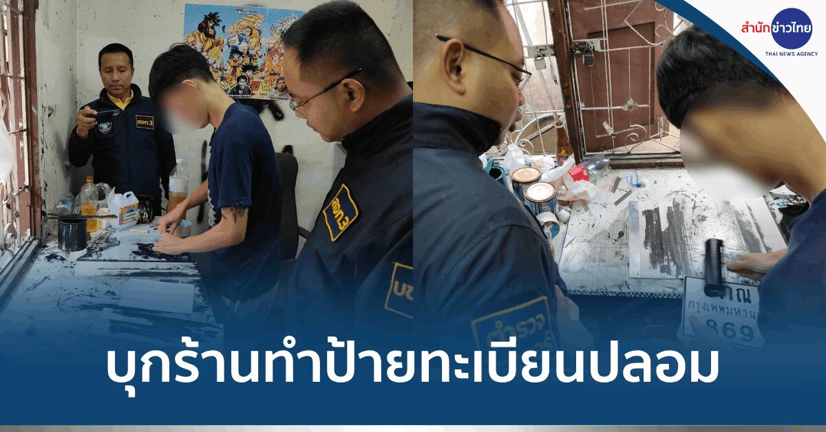 กทม. 13 ก.ค. – ตำรวจไซเบอร์ บุกร้านผลิตป้ายทะเบียนปลอมกลางกรุง รวบ 2 วัยรุ่นมือผลิต พบส่งขายออนไลน์ทั่วไทย ฟันรายได้กว่า 6 แสน