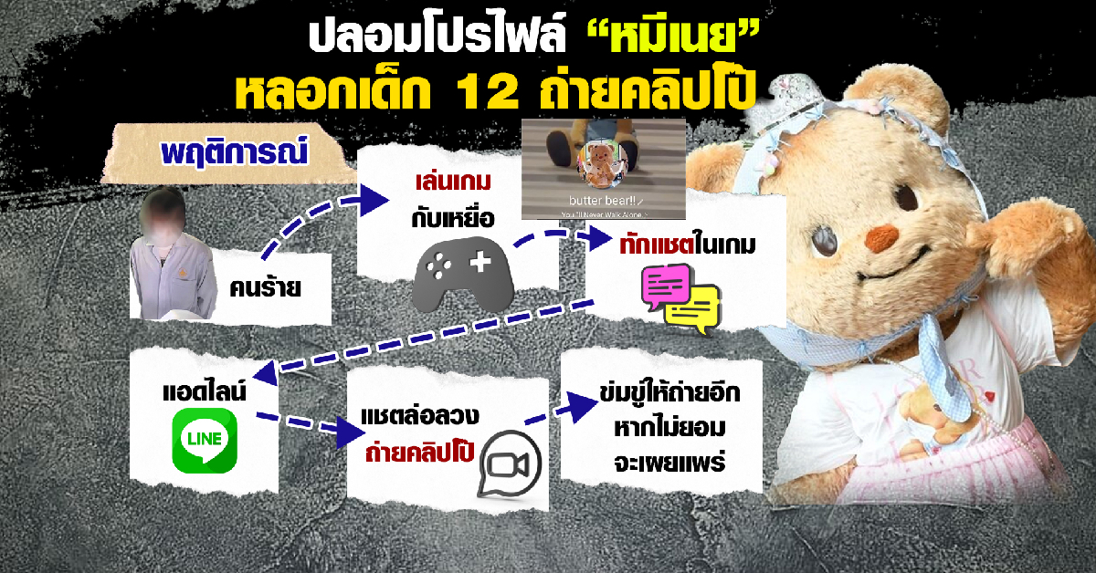 24 ก.ค. – รวบแล้วชายสวมรอยมาสคอตดัง “หมีเนย” หลอกเด็กสาวหลายรายถ่ายคลิปอนาจารโป๊ผ่านแชทเกม