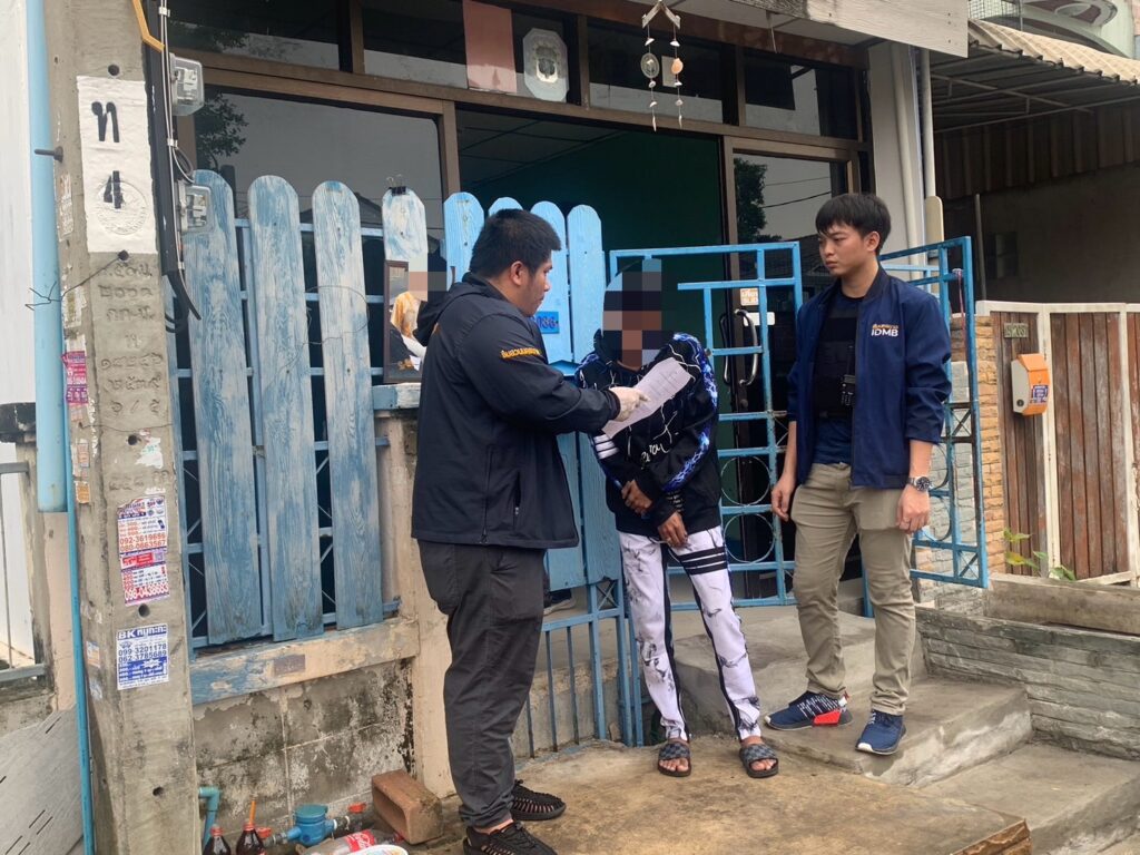 ต่อมาวันที่ 26 กรกฎาคม 2567 เวลาประมาณ 07.00 น. เจ้าหน้าที่ตำรวจ กก.สส.2 บก.สส.บช.น. ได้นำหมายค้นของศาลอาญาตลิ่งชัน ที่ ค.182/2567 ลงวันที่ 25 กรกฎาคม 2567 ให้ตรวจค้น บ้าน ในซอยพงศ์ศิริชัย 4 แขวงหนองค้างพลู เขตหนองแขม กรุงเทพมหานคร พบ นายนิวัฒิ ผู้ต้องหาที่ 1 เจ้าหน้าที่ชุดจับกุมจึงได้แสดงตัวเป็นเจ้าหน้าที่ตำรวจและได้แสดงบัตรประจำตัวข้าราชการตำรวจให้ นายนิวัฒิดู และจากนั้นเจ้าหน้าที่ตำรวจชุดจับกุมจึงได้นำหมายค้น ให้ นายนิวัฒิดูพร้อมทั้งอ่านข้อความในหมายค้นให้กับนายนิวัฒิดูจนเป็นที่เข้าใจแล้ว จึงให้ นายนิวัฒิ นำตรวจค้นภายในบริเวณบ้านพักของตน โดยสมัครใจและอยู่ร่วมดูการตรวจค้นโดยตลอด ผลการตรวจค้นบริเวณดังกล่าว พบ นายวิทยา ผู้ต้องหาที่ 2 และ นางสาวบี ผู้ต้องหาที่ 3 พักอาศัยอยู่ในบริเวณห้องพักชั้น 3 ของบ้านหลังดังกล่าวขณะตรวจค้น