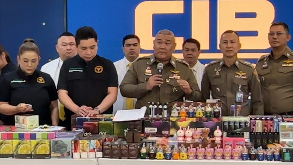 ตำรวจกองบังคับการปราบปรามการกระทำความผิดเกี่ยวกับการคุ้มครองผู้บริโภค แถลงผลปฏิบัติการผู้ลักลอบจำหน่ายบุหรี่ไฟฟ้าช่องทางออนไลน์รายใหญ่ในพื้นที่ภาคเหนือ ยึดของกลาง 31,790 ชิ้น รวมมูลค่าประมาณ 10 ล้านบาท