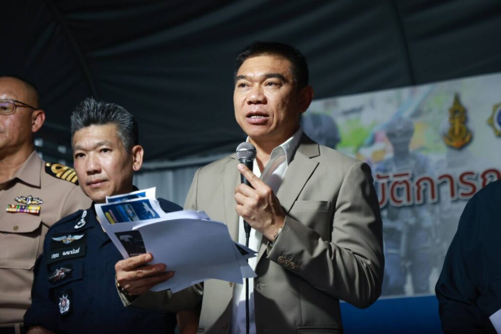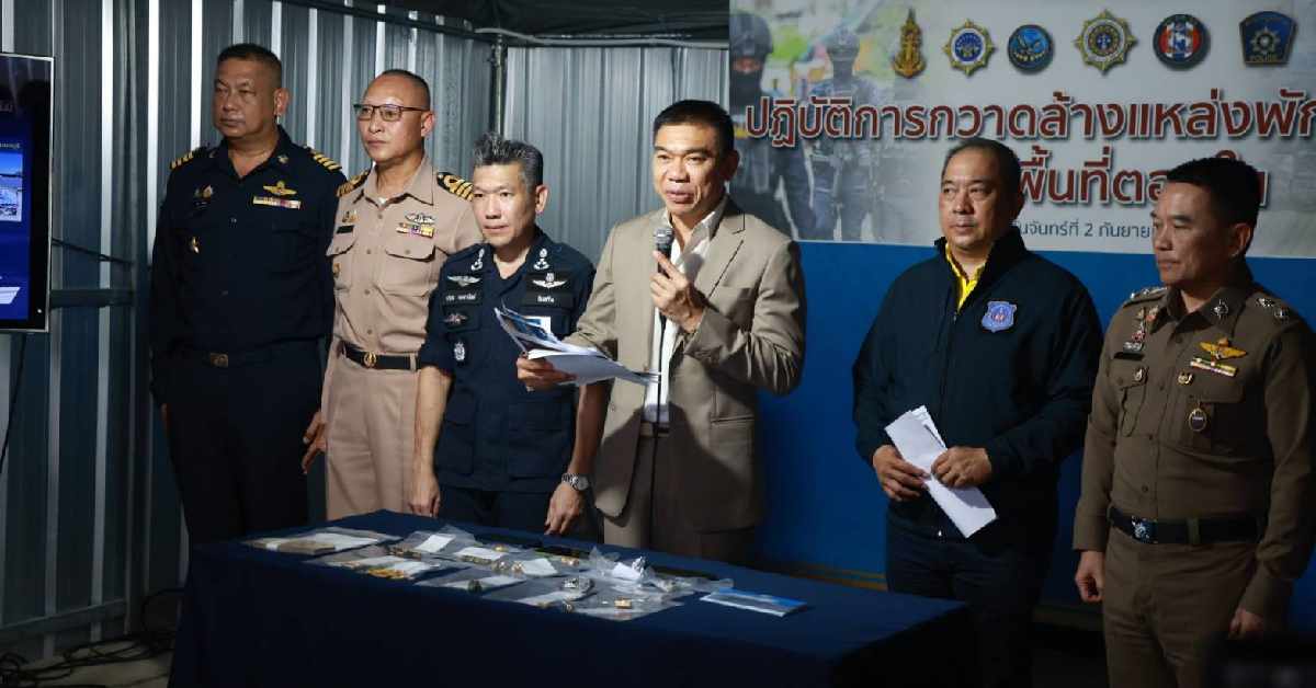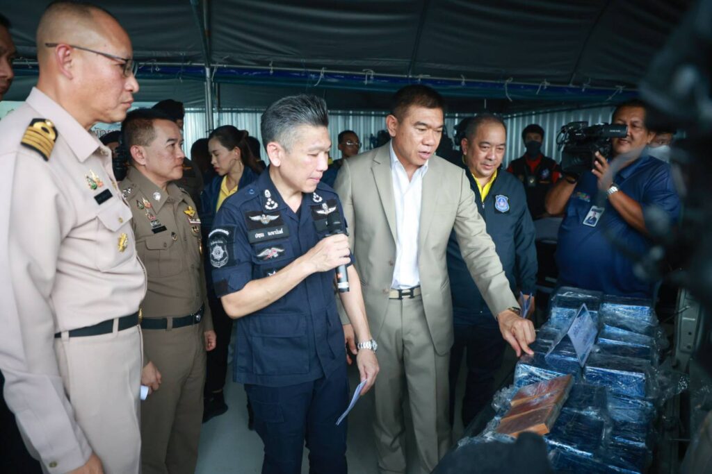 พล.ต.ท.ภาณุรัตน์ หลักบุญ เลขาธิการ ป.ป.ส. พร้อมด้วย นายปฤณ เมฆานันท์ ผู้อำนวยการสำนักปราบปรามยาเสพติด สำนักงาน ป.ป.ส. ร่วมแถลงผลงาน “ปฏิบัติการกวาดล้างแหล่งพักยาเสพติดในพื้นที่ตอนใน” พร้อมยาเสพติดของกลาง เฮโรอีน 91.7 กก. (262 แท่ง) และรถกระบะที่มีการดัดแปลงทำช่องลับสำหรับซุกซ่อนยาเสพติด