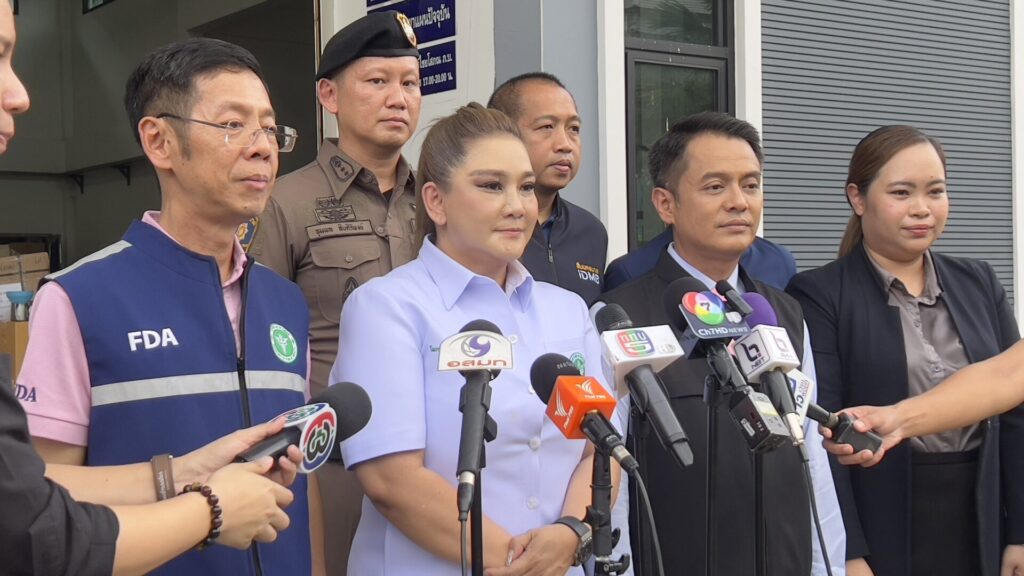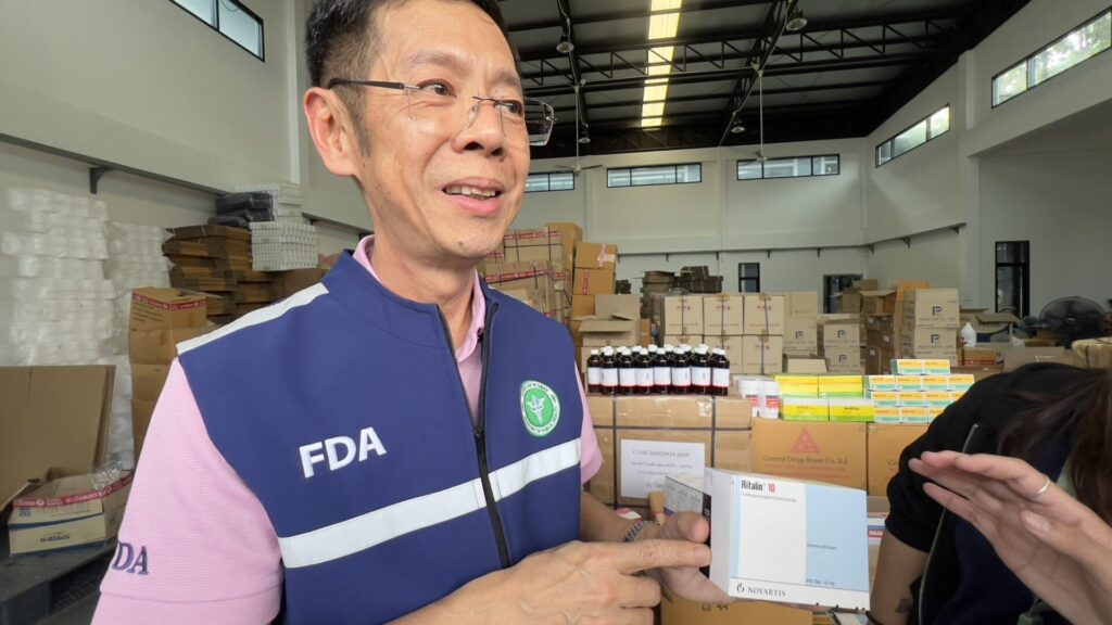 ส่วนยาวันนี้ที่ตรวจพบ มียาหลากหลายประเภท ซึ่งล้วนแล้วแต่เป็นยาที่ผลิตขึ้นมาเอง ยาที่ลักลอบนำเข้ามาจากต่างประเทศแบบผิดกฎหมาย มีการปลอมแปลงฉลากบรรจุภัณฑ์รวมถึงเลขทะเบียน อย.อีกด้วย ส่วนเรื่องป้ายที่มีชื่อของเภสัชกรหญิงติดอยู่ที่บริเวณด้านหน้าโกดัง จะต้องไปตรวจสอบอีกครั้งว่าเป็นแพทย์จริงหรือไม่ และมีการแอบอ้างหรือไม่