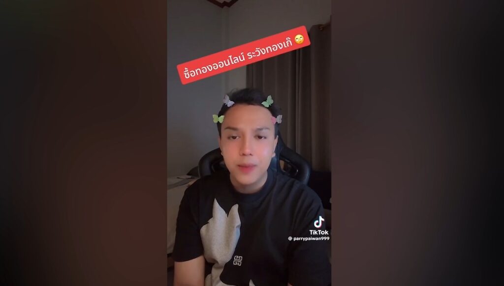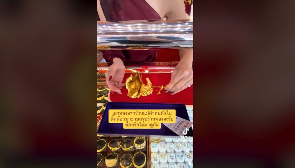 ในคลิปเจ้าของร้านทองถามว่า “ซื้อมาจากไหน ทองไม่สามารถรับซื้อได้ เพราะจี้และดอกไม้สีทองไม่มียี่ห้อและเปอร์เซ็นต์ทองบอก โดยลูกค้าโดนกันเยอะมาก ที่ไปซื้อทองออนไลน์เอามาขายที่ร้าน ไม่แนะนำให้ซื้อ ถ้ารับซื้อแล้วนำไปหลอมแทบไม่เหลืออะไรเลย ขาดทุนกันเยอะ มาซื้อที่ร้านทองดีกว่า จะได้เห็นสินค้า ได้จับต้องและมีใบรับประกันจากทางร้าน”