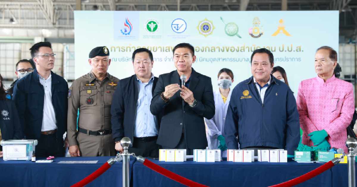 พล.ต.ท.ภาณุรัตน์ กล่าวว่า ยาเสพติดที่เผาทำลายวันนี้ มีน้ำหนักยาเสพติดของกลางรวมกว่า 25.51 ตัน จาก 126 คดี ได้แก่ ยาบ้า 13,313 กิโลกรัม (146 ล้านเม็ด) ไอซ์ 6,544 กิโลกรัม คีตามีน 634 กิโลกรัม เฮโรอีน 537 กิโลกรัม ยาอี 1 กิโลกรัม สารผสม 51 กิโลกรัม และยาเสพติดอื่นๆ โดยสำนักงาน ป.ป.ส. จัดการเผาทำลายยาเสพติดของกลางขึ้น เพื่อคลายข้อสงสัยของประชาชนเกี่ยวกับกระบวนการเผาทำลายยาเสพติดของกลาง ซึ่งในครั้งนี้ได้เชิญตัวแทนประชาชนจากทั้งภาครัฐและหน่วยงานที่เกี่ยวข้อง นักร้องนักแสดงที่มีอิทธิพลบนสื่อ และสื่อมวลชน มาเป็นสักขีพยานตรวจสอบของกลางที่จะเผาทำลาย เพื่อเป็นตัวแทนของประชาชนในการสร้างความมั่นใจและช่วยสร้างการรับรู้ต่อสังคมว่ายาเสพติดของกลางนั้นได้ถูกทำลายตามกระบวนการอย่างโปร่งใส พร้อมให้ความเชื่อมั่นกับประชาชนที่อยู่บริเวณโดยรอบว่ากระบวนการเผาทำลายยาเสพติดของกลางในครั้งนี้ มีระบบควบคุมมลพิษทางอากาศที่ไม่ก่อให้เกิดผลกระทบต่อสภาพแวดล้อม ดำเนินการเผาด้วยเตาเผาขยะอันตรายอุณหภูมิสูงกว่า 1,200 องศาเซลเซียส ที่ใช้เชื้อเพลิงก๊าซธรรมชาติ ไม่ก่อให้เกิดผลกระทบต่อสิ่งแวดล้อม