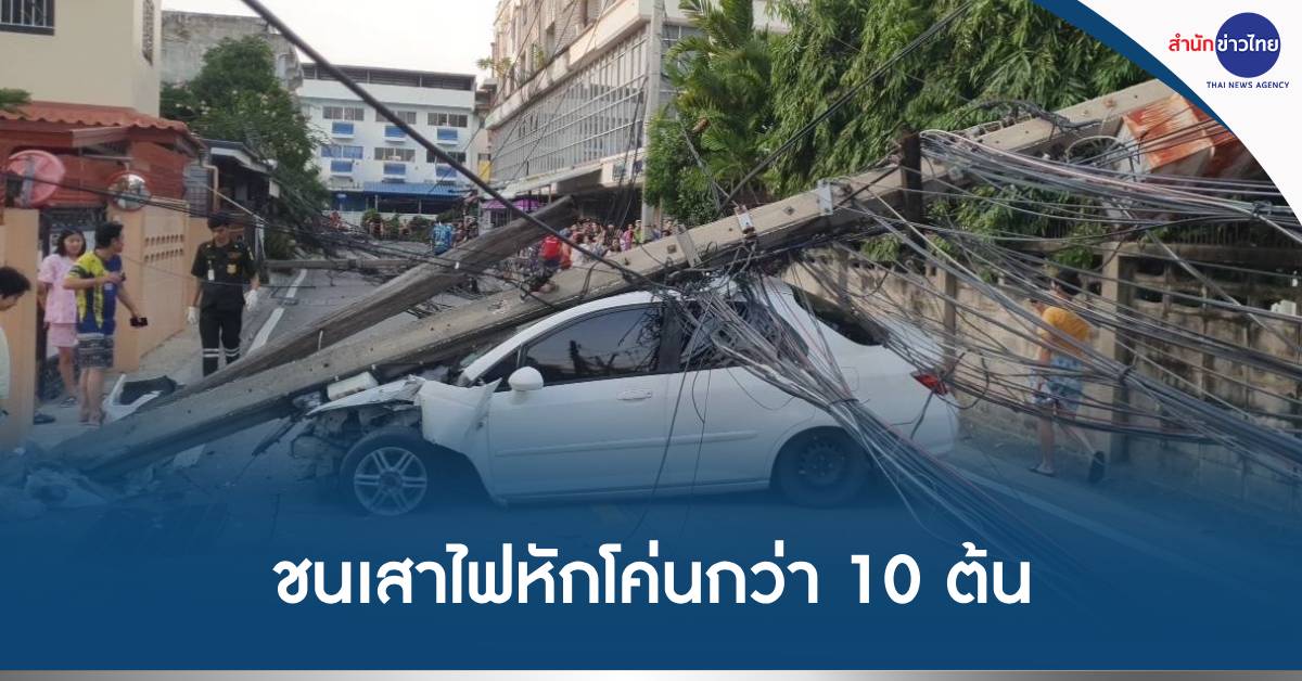 กทม. 6 ต.ค.-รถเก๋งเสียหลักพุ่งชนเสาไฟฟ้าหักโค่นกว่า 10 ต้น ซอยลาดพร้าว 48 แยก 6 ชาวบ้านเดือดร้อนไฟดับ เข้า-ออกซอยไม่ได้ ตร.เร่งสอบสวนคนขับหาสาเหตุ