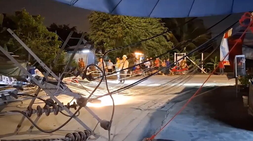 จุดเกิดเหตุภายในซอยวัดบัวผัน ถนนเลียบทางด่วนกาญจนาภิเษก พระประแดง แขวงทุ่งครุ เขตทุ่งครุ กรุงเทพมหานคร พบรถเทรลเลอร์พ่วงบรรทุกตู้คอนเทนเนอร์ ยี่ห้อฮีโน่ สีขาว ขณะที่เสาไฟฟ้าใกล้เคียง ล้มพาดอยู่บนตู้คอนเทนเนอร์ ยังมีรถยนต์ฮอนด้า สีขาว ถูกสายไฟฟ้างพาดหลังคารถ และเกิดประกายไฟจนหลังคารถมีรอยไหม้