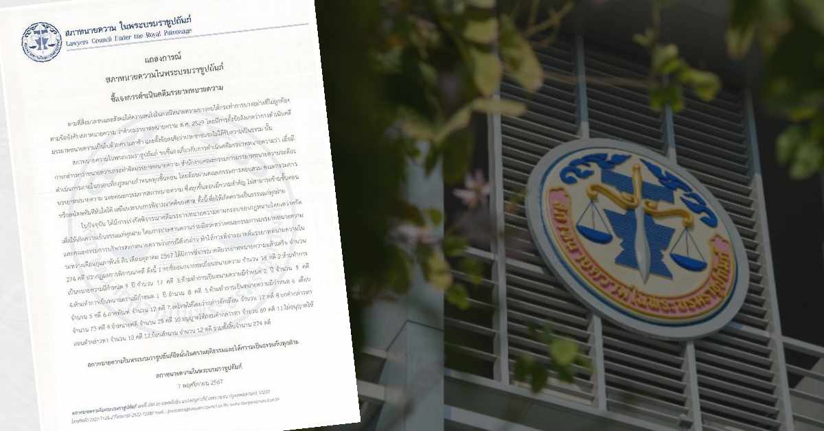 7 พ.ย. – ตามที่สื่อมวลชนและสังคมให้ความสนใจในกรณีทนายความบางคนได้กระทำการบางอย่างที่ไม่ถูกต้อง ตามข้อบังคับสภาทนายความ ว่าด้วยมรรยาททนายความ พ.ศ.2529 โดยมีการตั้งข้อสังเกตว่าการดำเนินคดีมรรยาททนายความเป็นไปด้วยความล่าช้า และตั้งข้อสงสัยว่าประชาชนจะไม่ได้รับความเป็นธรรม นั้น