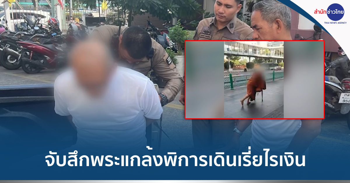 วันนี้ (10 พ.ย.) ช่วงเวลา 07.20 น. เจ้าหน้าที่ สน.พญาไท รับแจ้งจากศูนย์วิทยุ 191 ว่ามีชายแต่งกายคล้ายพระสงฆ์ เดินเรี่ยไรเงินอยู่บริเวณท้ายซอยเพชรบุรี 19 แขวงถนนพญาไท เขตราชเทวี กรุงเทพมหานคร จึงไปตรวจสอบพร้อมเจ้าหน้าที่สายตรวจ พบนายนิพนธ์ อายุ 65 ปี เดินเรี่ยไรเงินพร้อมเปิดเครื่องเสียง ลักษณะท่าเดินคล้ายคนพิการ พร้อมทั้งแต่งกายคล้ายพระสงฆ์ เจ้าหน้าที่จึงเรียกให้หยุดและขอตรวจสอบ