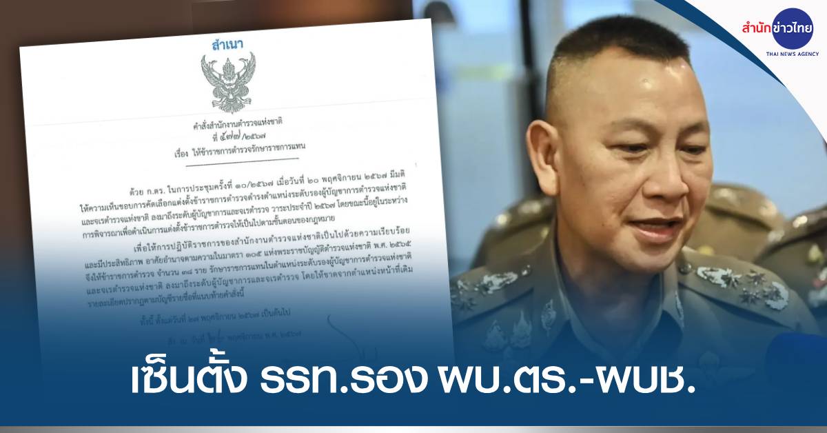ด้วย ก.ตร. ในการประชุมครั้งที่ 10/2567 เมื่อวันที่ 20 พฤศจิกายน 2567 มีมติให้ความเห็นชอบการคัดเลือกแต่งตั้งข้าราชการตำรวจดำรงตำแหน่งระดับรองผู้บัญชาการตำรวจแห่งชาติและจเรตำรวจแห่งชาติ ลงมาถึงระดับผู้บัญชาการและจเรตำรวจ วาระประจำปี 2567 โดยขณะนี้อยู่ในระหว่างการพิจารณาเพื่อดำเนินการแต่งตั้งข้าราชการตำรวจให้เป็นไปตามขั้นตอนของกฎหมาย