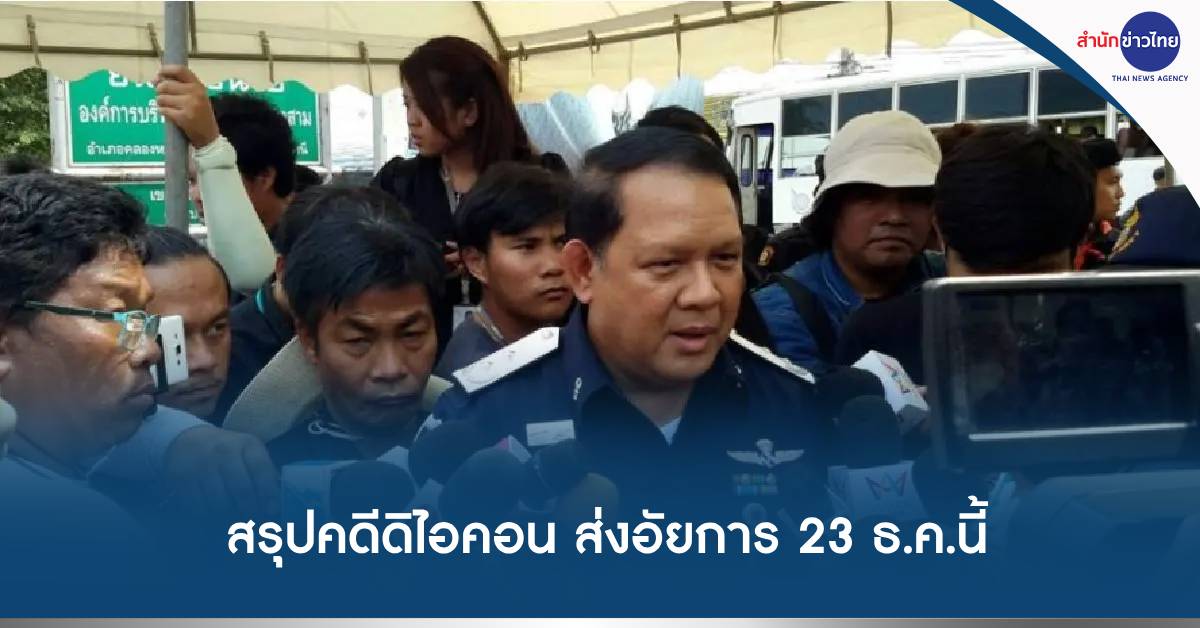 ดีเอสไอ 16 ธ.ค.-DSI เตรียมสรุปสำนวนคดีดิไอคอน ส่งพนักงานอัยการ สำนักงานคดีพิเศษ ในวันจันทร์ที่ 23 ธ.ค. ส่วนวันที่ 20 ธ.ค. จะประชุมพิจารณาว่าจะสั่งฟ้องหรือสั่งไม่ฟ้องผู้ต้องหารายใด จากข้อกล่าวหาใดบ้าง