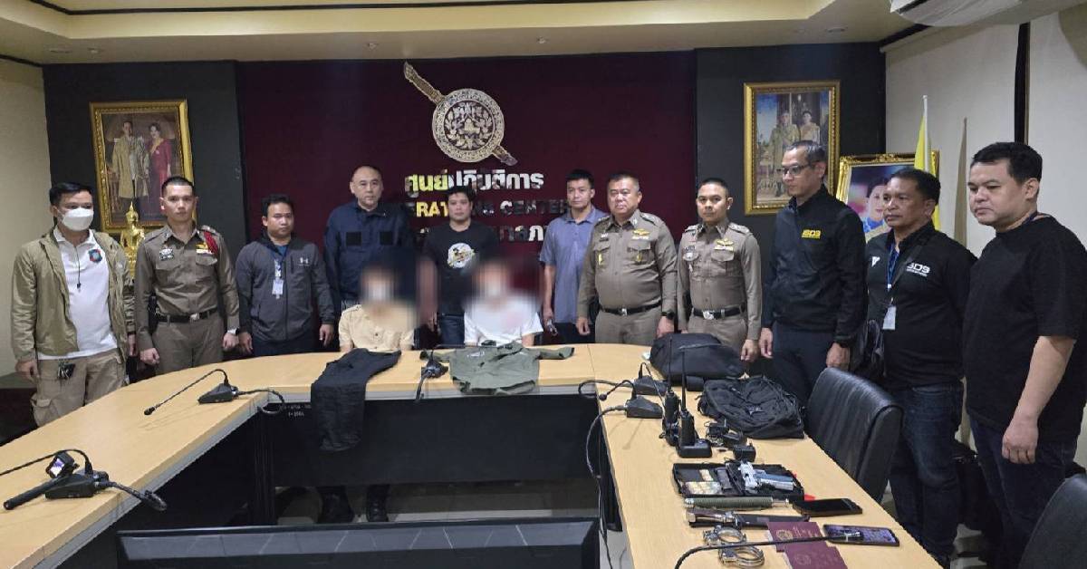 20 ธ.ค. – ตำรวจ กก.สส.บก.น.9 และตำรวจชุดสืบสวน สน.ภาษีเจริญ ร่วมกันจับกุม นายซัน เจี๊ยน สัญชาติจีน อายุ 31 ปี และนายซัน ห่าว สัญชาติจีน อายุ 23 ปี ข้อหา “ร่วมกันกรรโชกทรัพย์โดยมีอาวุธปืน,ร่วมกันทำร้ายร่างกายผู้อื่นเป็นเหตุให้ได้รับอันตรายแก่กายหรือจิตใจ ร่วมกันหน่วงเหนี่ยวหรือกักขังผู้อื่นหรือกระทำด้วยประการใดให้ผู้อื่นปราศจากเสรีภาพในร่างกาย, ร่วมมีอาวุธปืนและเครื่องกระสุนปืนไว้ในครอบครองโดยไม่ได้รับอนุญาต” พร้อมด้วยของกลาง 7 รายการ ประกอบด้วย 1.อาวุธปืนไทยประดิษฐ์ ขนาด .380 นิ้ว 1 กระบอก 2.กระสุนปืน ขนาด .380 นิ้ว จำนวน 29 นัด 3.ซองบรรจุกระสุนขนาด .380จำนวน 1 อัน 4.ดิ้วกระบอง จำนวน 1 ท่อน 5.กุญแจมือ จำนวน 2 อัน 6.มีดปลายแหลม จำนวน 1 เล่ม และ7.เสื้อผ้าชุดที่ใส่ในวันก่อเหตุ 8.โทรศัพท์มือถือ จำนวน 2 เครื่อง โดยจับกุมได้ที่บริเวณห้องพัก ซอยประชาอุทิศ 24 แขวง/เขตห้วยขวาง กทม.