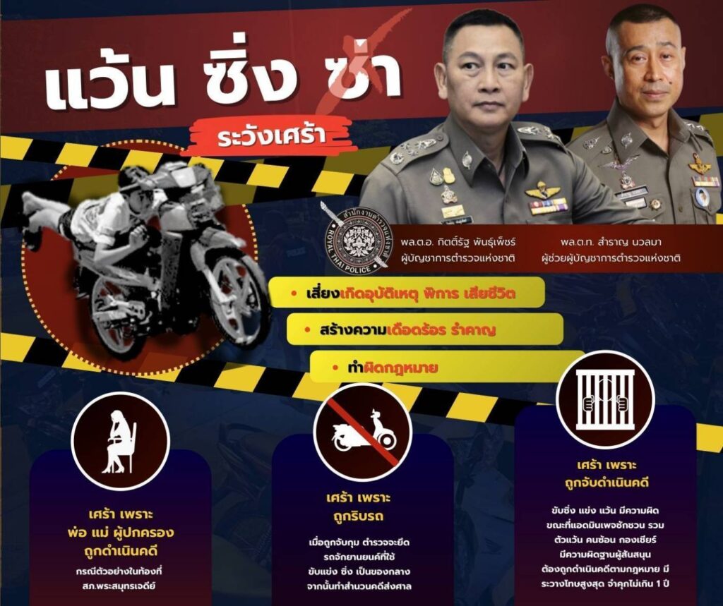 พล.ต.อ.กิตติ์รัฐ พันธุ์เพ็ชร์ ผู้บัญชาการตำรวจแห่งชาติ (ผบ.ตร.) และ พล.ต.อ.ประจวบ วงศ์สุข รอง ผบ.ตร. ได้มอบหมายให้ พล.ต.ท.สำราญ นวลมา ผู้ช่วย ผบ.ตร. ในฐานะหัวหน้าคณะทำงานป้องกันปราบปรามการขับขี่รถโดยไม่คำนึงถึงความปลอดภัยหรือความเดือดร้อนของผู้อื่น การแข่งรถ หรือความผิดอื่นที่เกี่ยวข้อง พร้อมด้วย พล.ต.ต.สารนัย คงเมือง ผบก.ภ.จว.เพชรบูรณ์ , พ.ต.อ.สราวุธ คนใหญ่ รอง ผบก.สส.ภ.6 ขยายผลผู้กระทำผิดเกี่ยวกับการแข่งรถในทาง เครือข่ายทริป “น้ำไม่อาบ” นำไปสู่การจับกุมยาบ้ารวมกว่า 15.6 ล้านเม็ด (เครือข่าย RNC8) พบว่ามีการหาเครือข่ายทั้งผู้ซื้อ ผู้ขาย ใช้ออกทริปบังหน้า
